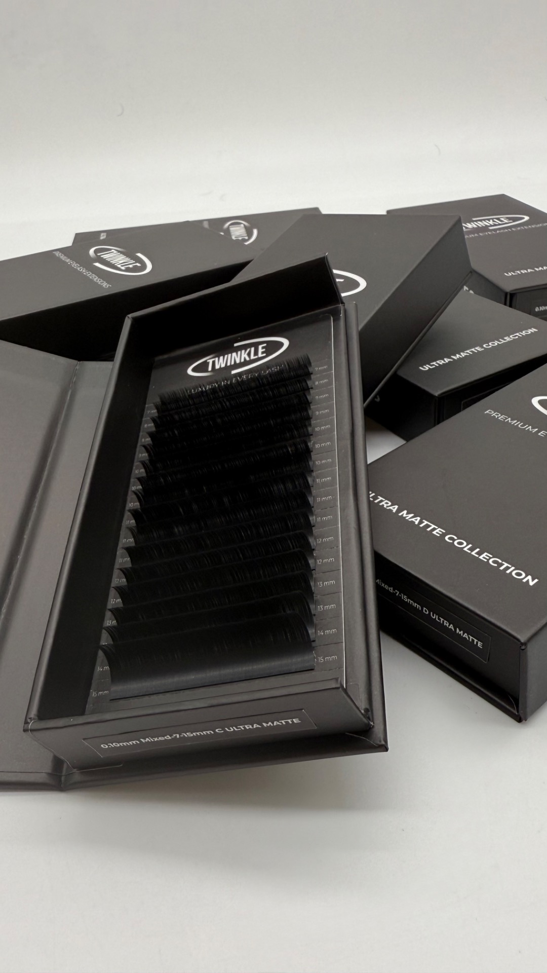 TWINKLE Ultra Matte Collection – rzęsy klasy premium z włókna PBT, łączące elegancję, trwałość i komfort aplikacji.