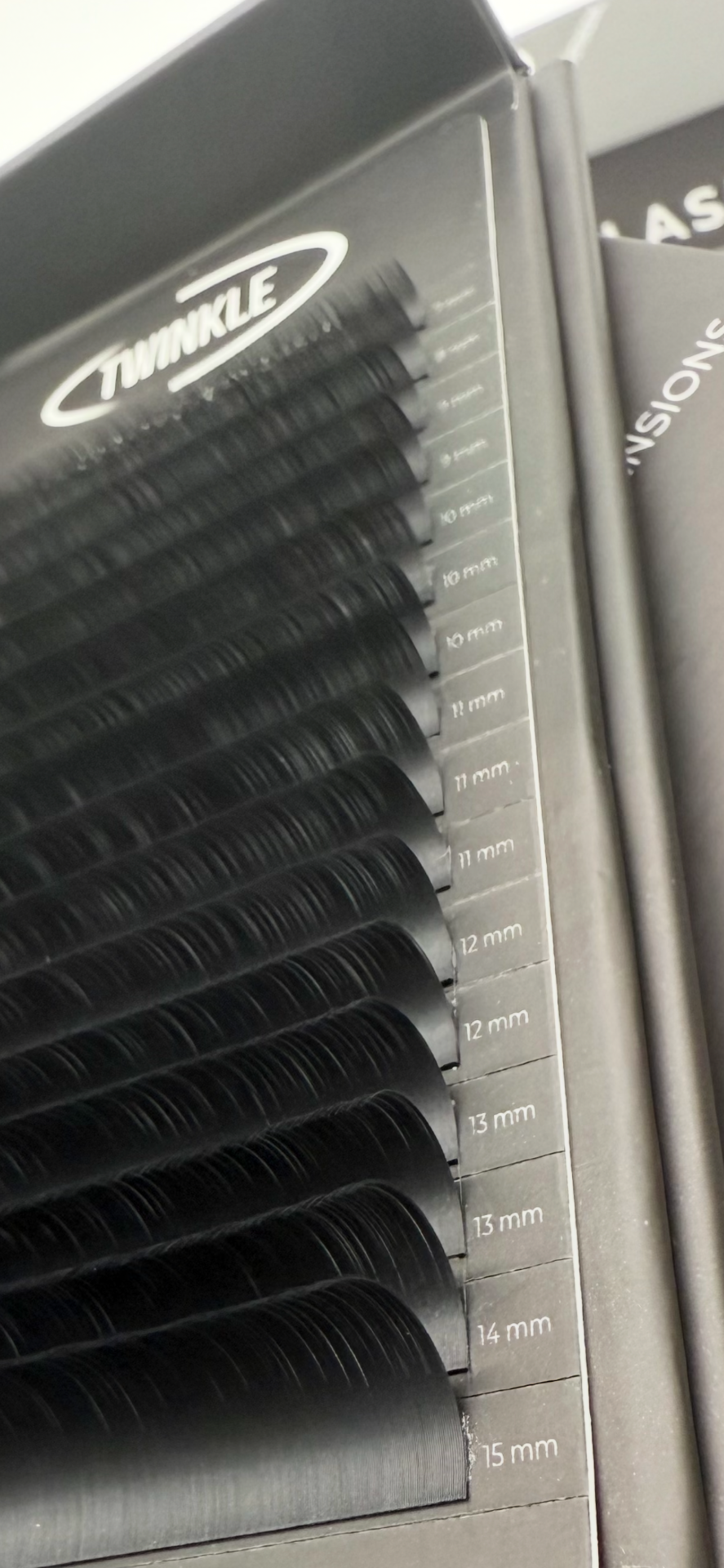 Rzęsy Twinkle wykonane są z wysokiej jakości PBT – są lekkie, elastyczne i wyjątkowo trwałe. Ultra matowe wykończenie daje naturalny, elegancki efekt bez sztucznego połysku, a perfekcyjny skręt sprawia, że stylizacja wygląda świeżo i pięknie przez długi czas